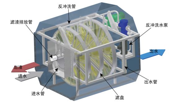 正常状态下的纤维束滤料直径可达几十微米甚至几微米,并具有比表面积大,过滤阻力小等优点,解决了粒状滤料的过滤精度受滤料粒径限制等问题。微小的滤料直径,极大地增加了纤维束滤料的比表面积和表面自由能,增加了水中杂质颗粒与滤料的接触机会和滤料的吸附能力,从而达到做好的过滤和劫污效果。